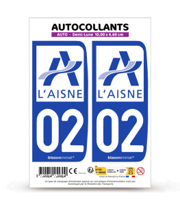 02 Aisne - Département | Autocollant plaque immatriculation