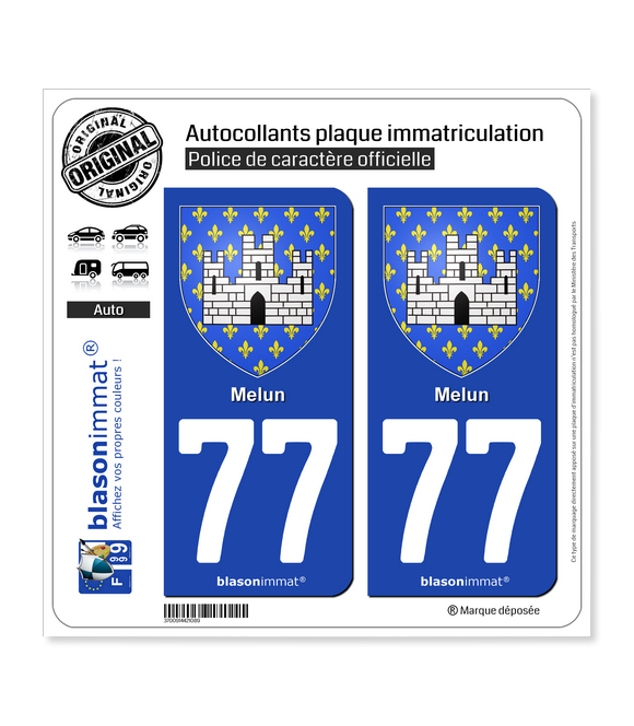• 77 Melun - Armoiries | Autocollant plaque immatriculation