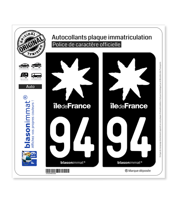 94 Ile-de-France- LogoType Black | Autocollant plaque immatriculation