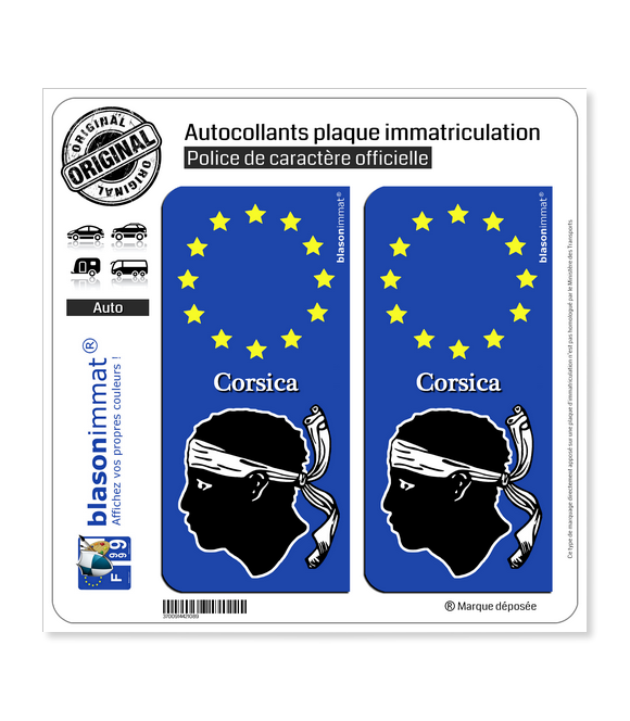 • Corsica - Identifiant Européen | Autocollant plaque immatriculation